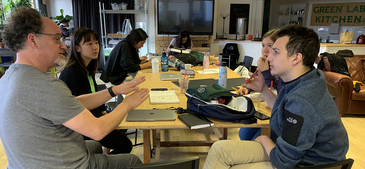 The program also welcomed guest lecturers who spoke about their work and experience design. Dr. Helga Schmid from the London College of Communication spoke about designing for time—design not for clocks but around natural time like circadian rhythms. Alistair McClymont from the London College of Communication gave a talk about his work as a digital artist. Dr. Kate McLean presented about her work creating “smellmaps” of cities and about visualizing ephemeral experiences. And Clare Farrell, co-founder of the environmental action group Extinction Rebellion, presented about designing advocacy experiences.